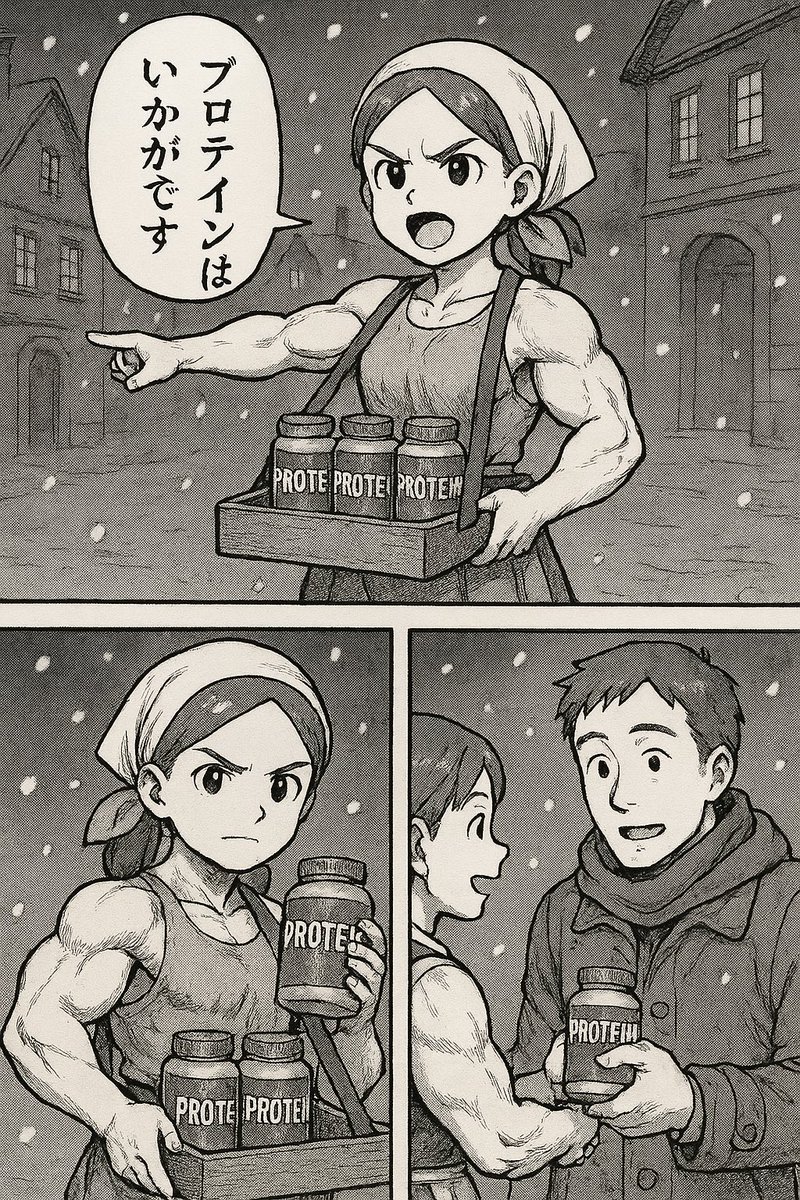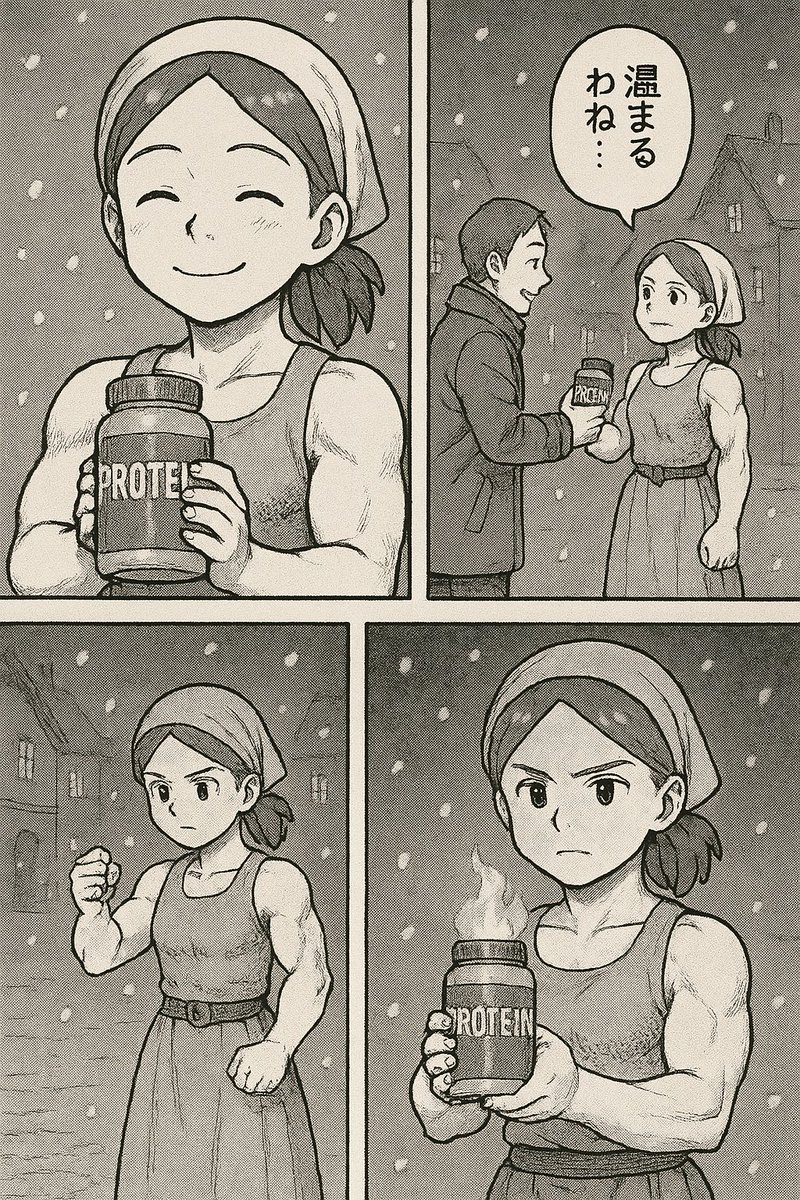「マッチョ売りの少女の漫画描いて」というプロンプトのみでストーリー展開も全部ChatGPTに任せた結果